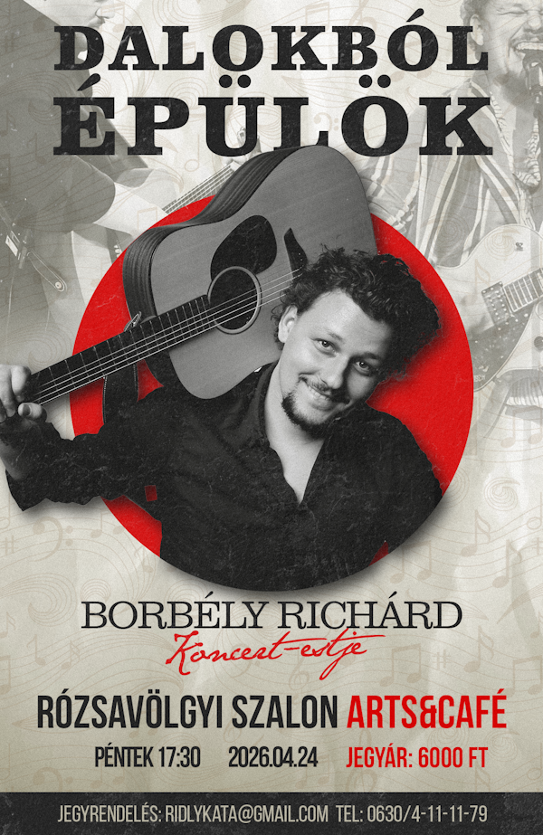 2026. április 24., péntek 17:30 - 19:00 - Rózsavölgyi Szalon - Borbély Richárd koncert-estje (Belépődíj: 6000 Ft)